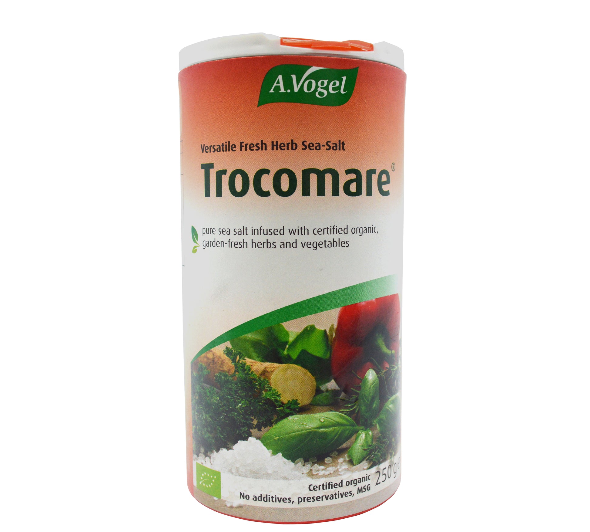 Trocomare® is made according to the original recipe of the world famous Swiss Naturopath A.Vogel and is prepared with fresh, organically grown herbs. The fresh herbs are combined with natural sea salt and allowed to steep? for up to one year before the moisture is removed by a special vacuum process at low temperature. This steeping process integrates the full herb and vegetable flavour into the salt crystal.